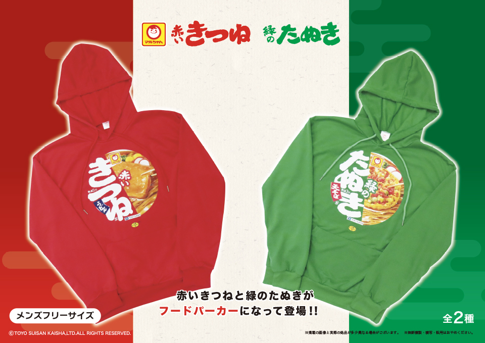 赤いきつねと緑のたぬき フードパーカー
